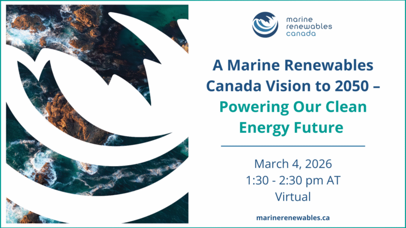 Join Marine Renewables Canada for a webinar diving into the Marine Renewable Energy Sector Vision 2050, and the actions needed to turn this vision into reality. From large-scale offshore wind and tidal developments to community-scale tidal, wave, and river-current projects, you’ll gain insight into how this emerging sector fits within Canada’s broader clean energy transition, helping to meet rising electricity demand, strengthen energy security, and support sustainable economic growth from coast to coast to coast.