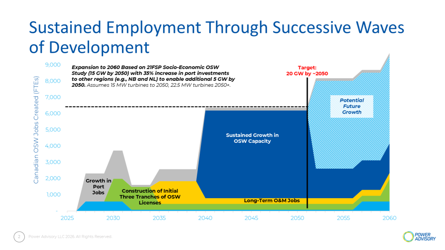 Offshore wind represents the single largest opportunity. By 2040, the sector could support an estimated 6,400 jobs across manufacturing, transportation, construction, installation, and long-term operations and maintenance.