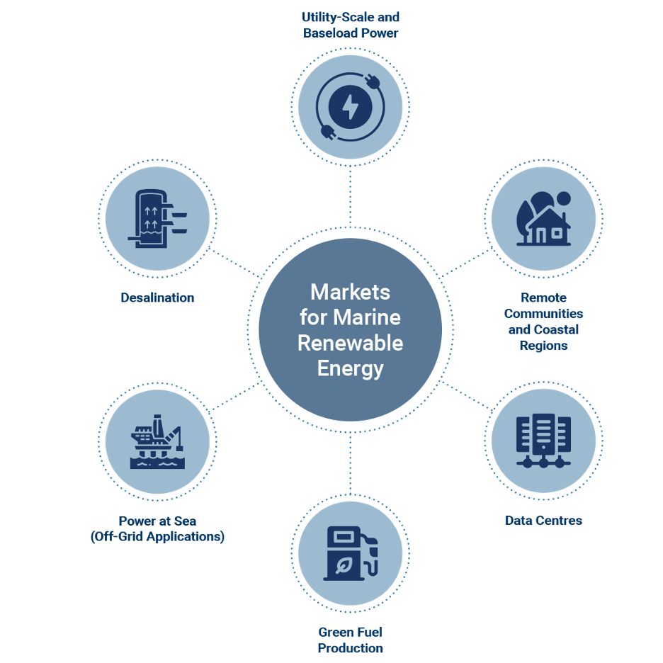 “Power at sea” is a growing market for marine renewables, delivering zero-emission energy to offshore and ocean industries. Applications include aquaculture, ports, ocean observation, marine robotics, and offshore operations. Marine renewables reduce fuel costs, cut emissions, and support a resilient, sustainable blue economy.