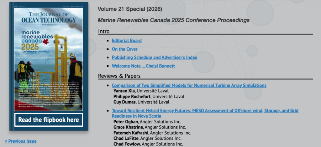 Marine Renewables Canada (MRC) is pleased to present a special edition of The Journal of Ocean Technology, bringing together cutting-edge research from the 2025 Marine Renewables Canada Conference […]