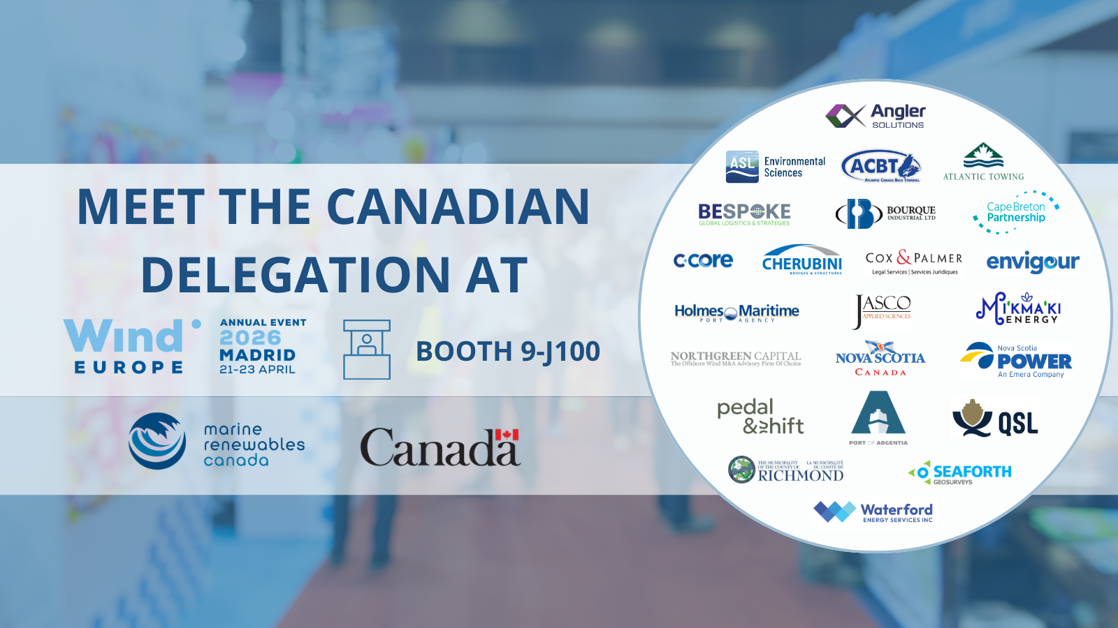 Halifax (Nova Scotia), April 17, 2026 – Marine Renewables Canada (MRC), with support from the Government of Canada, is on the ground next week at WindEurope 2026 in Madrid, Spain, leading a Canadian trade mission of 24 companies and organizations to advance international business opportunities and strengthen Canada’s position in the global offshore wind sector.